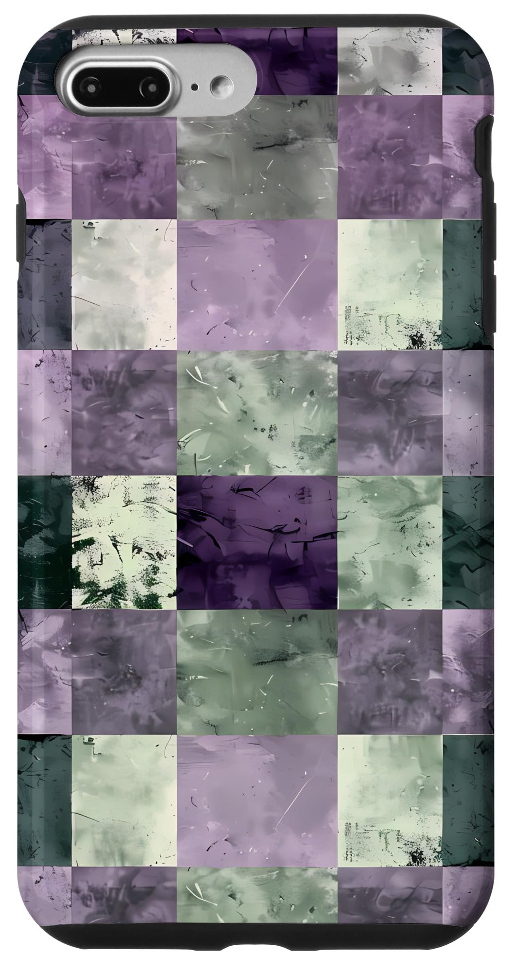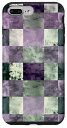 iPhone 7 Plus/8 Plus パープルアールデコストライプセージグリーンチェック柄。 スマホケース
