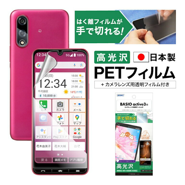 【高光沢・高透明】 BASIO active3 フィルム ツヤ 色鮮やか クリア AFP液晶保護フィルム3 指紋防止 キズ防止 防汚 気泡消失 保護フィルム カメラフィルム 割れない 日本製 ASDEC アスデック ASH-KYG04-Z