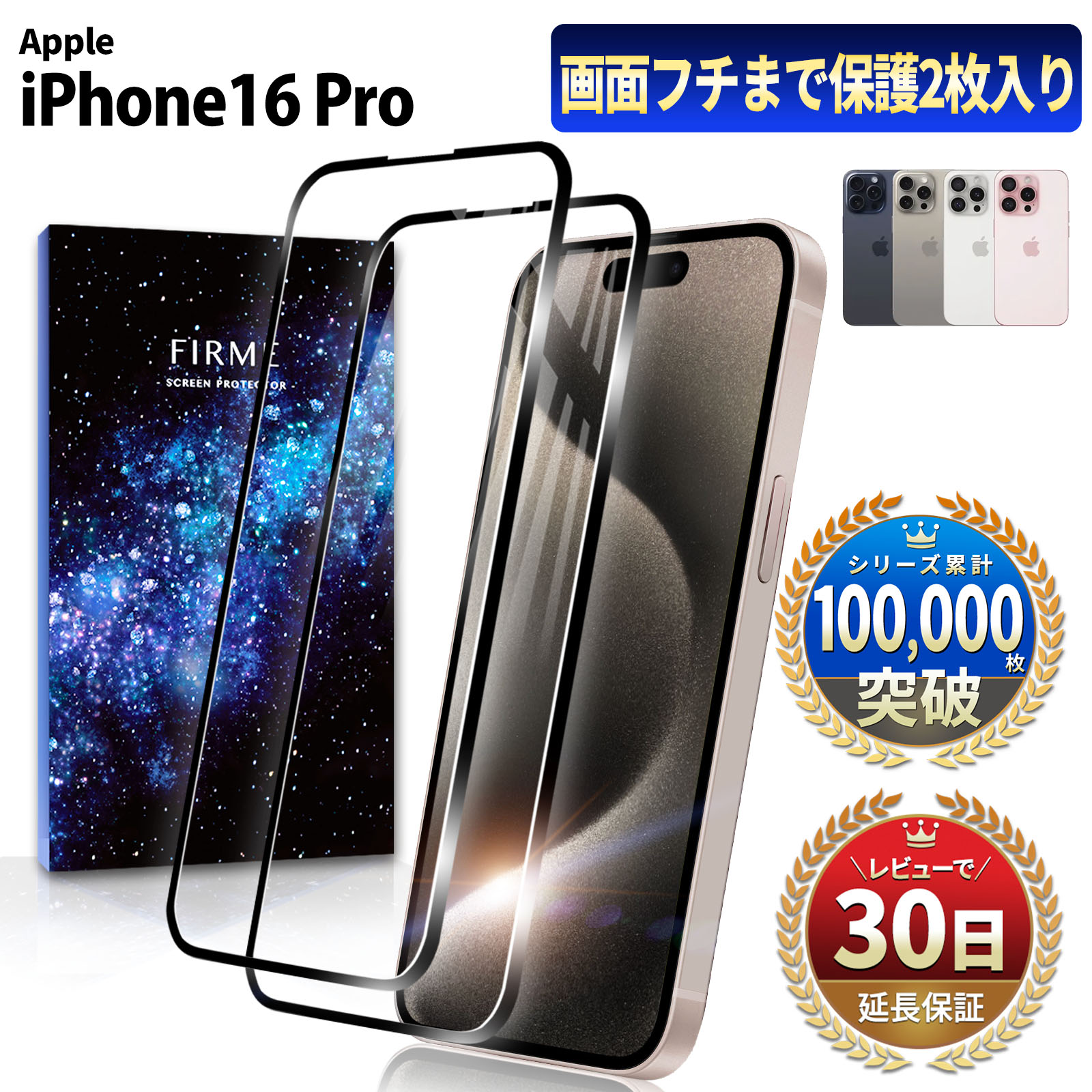 iPhone 16 Pro ガラスフィルム iPhone 16 Pro フィルム iPhone16 Pro 保護フィルム ガラス カバー 耐衝撃 本体 保護 全面吸着 6D 平面設計 スマホフィルム アイフォン16 プロ 液晶 画面 ケースに干渉しない 指紋 防止 ブラック 2枚入