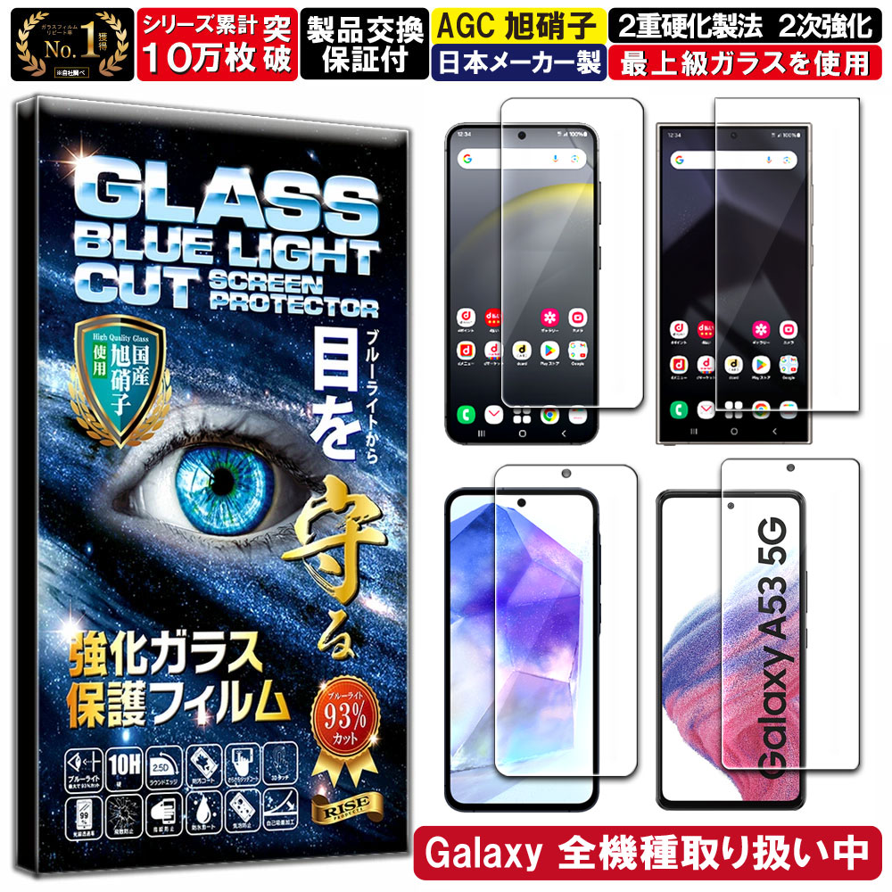 2枚セット ブルーライトカット Galaxy S24 5G / S24 ultra / A55 5G / A53 5G / A52 5G / A51 5G ガラスフィルム フィルム A23 5G / A22 5G / A21 /A20 対応 硬度10H W硬化製法 強化ガラス 液晶 画面 保護 保護フィルム クリアガラス ライズプロダクツ