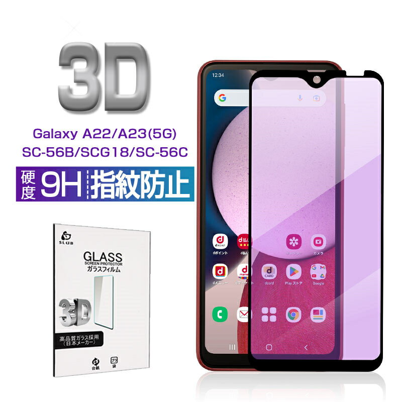 Galaxy A22 5G / Galaxy A23 5G ブルーライトカット仕様 強化ガラスフィルム SC-56B / SCG18 / SC-56C / SM-A233C 液晶保護ガラスシール 3D フルカバー 超薄型 高感度タッチ 滑らか 表面硬度9H 耐衝撃 傷防止 割れにくい 疎油 撥水 摩擦防止 簡単貼り付け
