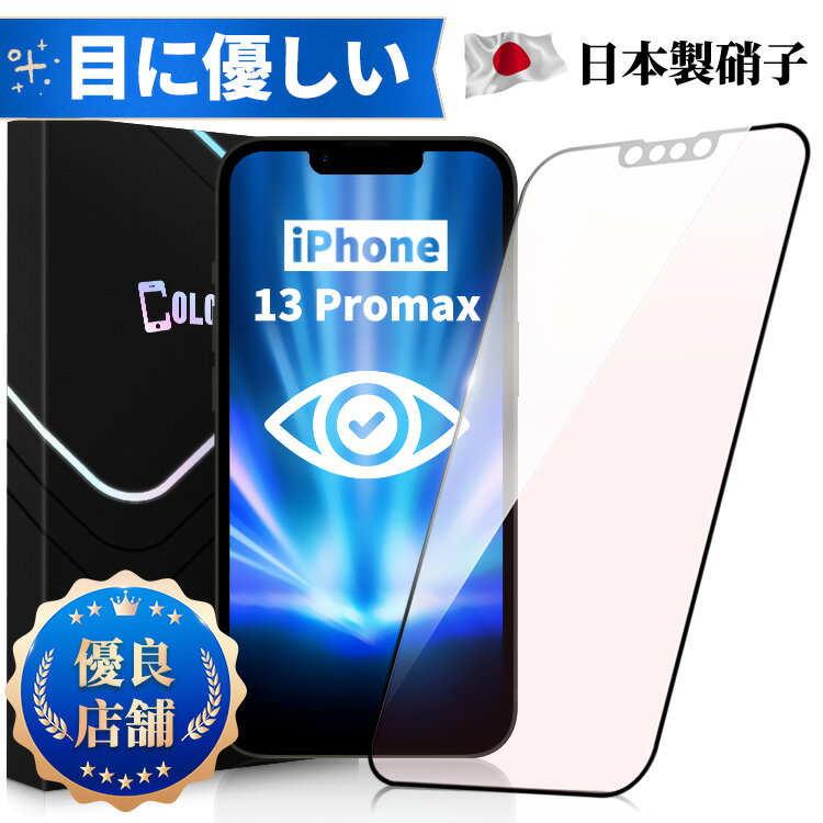 【目に優しい・全面保護タイプ】iPhone 13 Pro Max ブルーライトカット ガラスフィルム iPhone13ProMax フィルム iPhone 13 ProMax 保護シート 13promax 保護フィルム 光沢 マット さらさら ゲーム用 保護シート 日本製旭硝子 長時間使用