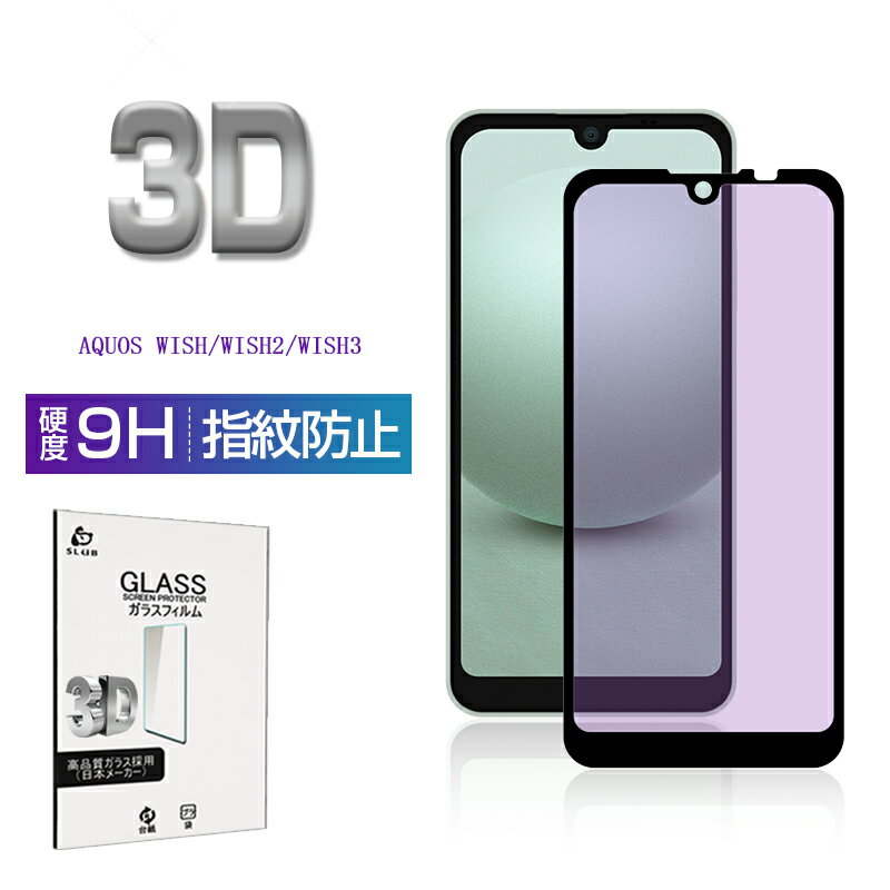 AQUOS wish / wish2 / wish3 ブルーライトカット仕様 強化ガラスフィルム アクオス ウィッシュ スマホ用 液晶保護ガラスシール AQUOS wish3 SH-53D / A303SH / SH-M25 スクリーン保護シート AQUOS wish2 全面保護 3D フルカバー 高透過率 ケース併用可能 全国一律送料無料
