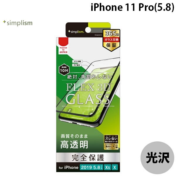 トリニティ Simplism iPhone 11 Pro / XS / X [FLEX 3D] 複合フレームガラス ブラック 光沢 0.51mm # TR-IP19S-G3-CCBK シンプリズム (スマホ用液晶保護ガラスフィルム) 完全保護