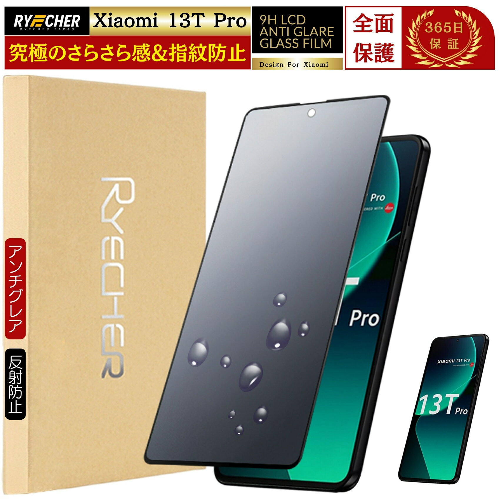 アンチグレア Xiaomi 13T Pro ガラスフィルム 保護フィルム フィルム 全面保護 Xiaomi13T Pro さらさら 指紋防止 指紋認証 シャオミ13T プロ 保護シート 強化ガラス シャオミ 23088PND5R RYECHER JAPAN 液晶保護フィルム
