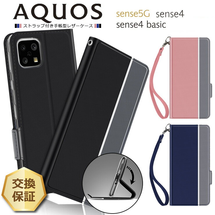 【15%OFFクーポン+P5倍】 AQUOS sense4 [ SH-41A ] AQUOS sense4 lite [ SH-RM15 ] sense5G [ SH-53A / SHG03 ] sense4 basic [ A003SH ] シンプル 手帳型 aquos sense5g ケース レザーケース 手帳ケース 無地 高級 PU ストラップ付き 全面保護 耐衝撃 ア