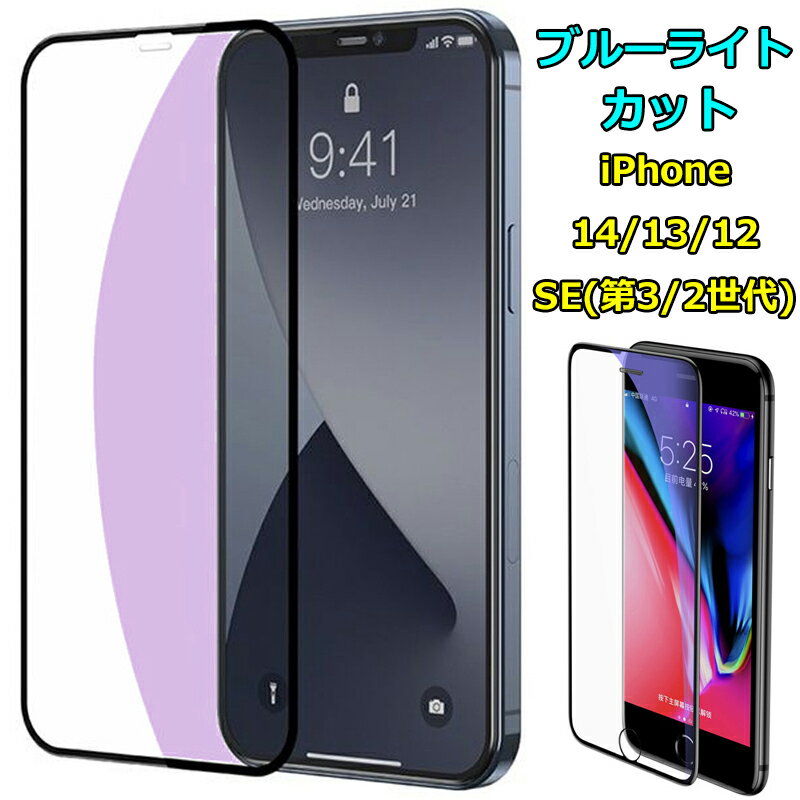 ブルーライト カット iPhone16e 16 16Plus 16Pro Max 15 15Plus 15Pro Max 14 14Plus 14Pro Max SE3 第3世代 13 13mini 13promax 12 12Pro 12mini 第2世代 ガラスフィルム 11 11Pro Max XS MAX X XR 8 全面保護 画面保護フィルム 強化ガラス 保護フィルム 16E