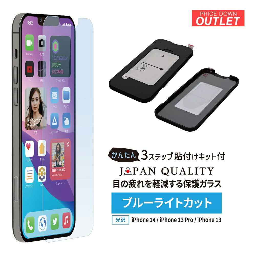 【アウトレット商品】 iPhone 14・iPhone 13 Pro・iPhone 13(6.1インチ)用 画面保護 強化ガラス 光沢+ブルーライトカット41%タイプ