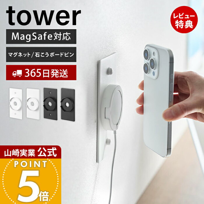 【レビュー特典】 tower〔 山崎実業 ウォールスマートフォン充電ホルダー タワー 石こうボード壁対応 〕 スマホホルダー スタンド マグネット MagSafe対応 ワイヤレス充電 壁掛け 壁付け 壁面収納 石膏ボード シンプル スチール 公式 白 黒 10084 10085 新商品