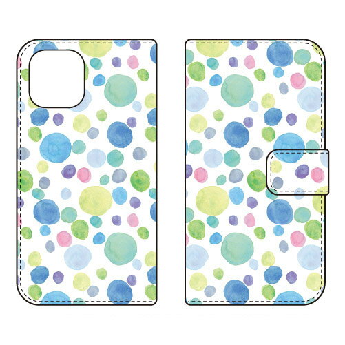 手帳型スマートフォンケース Cf LTD 水彩 水玉模様 大 ブルー iPhone 12 Apple Coverfull 受注生産 スマホケース 手帳型ケース アップル iphone12 iphone12 ケース iphone12 カバー アイフォーン12 ケース アイフォーン12 カバー 送料無料