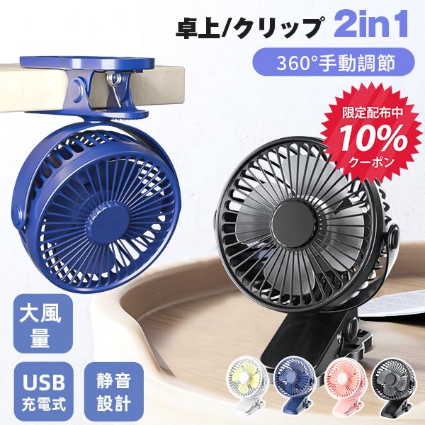 扇風機 クリップタイプ 卓上扇風機 360° 手動調節 大風量 強力 静音 節電 ハンディファン 扇風機 車載 車用 USB充電 携帯扇風 低騒音 軽量
