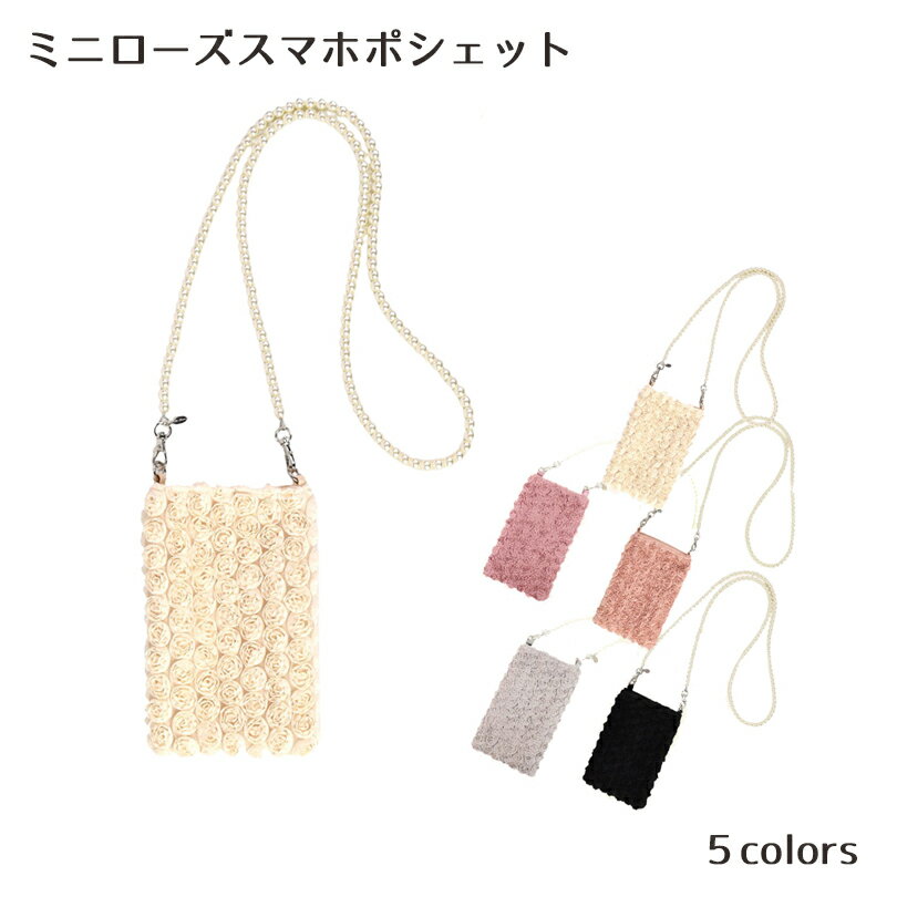 ミニローズ スマホポシェットピンク ベージュ ブラック グレー バッグ バラ ローズ エレガント スマホケース ストラップ ギフト プレゼント 母の日 かわいい 薔薇 母の日 贈り物 姫系 北欧 輸入雑貨RE03AMR-2308