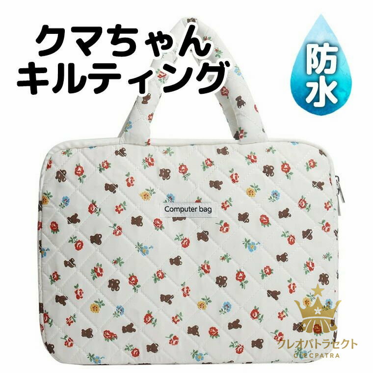 【先着50枚!13%OFFクーポン】2サイズ 防水撥水 シンプルお洒落 一目でかわいい PCバッグ 可愛い タブレットケース PCケース レディース キッズ パソコンケース iPadケース おしゃれ 学生 通学 お洒落 北欧 韓国 プチプラ 軽量 くま柄 クマ柄 キルティング