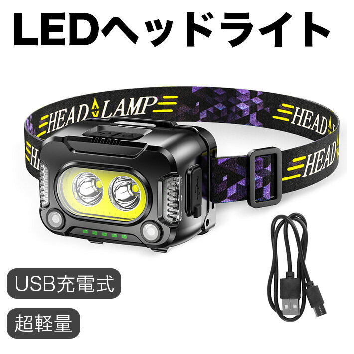 【高輝度LEDライト|超軽量で防水】CREE-XPG規格LED2個を採用し、ANSI規格に準拠した弊社のUSB充電式ヘッドライトは、明るさ350ルーメン、照明距離200メートルを実現します。夜間走行、夜釣り、登山などのアウトドア活動時に長時間装着しても頭が痛くなりません。防水等級「IPX45」で、日常的な使用や小雨やほこりへの心配はありません。【手動もジェスチャーセンシングも対応】センサー機能が搭載され、両手が自由に使えるため、夜釣りや夜間の庭の手入れ、車の作業など、汚れた手でスイッチを触る必要がありません。センサー機能を使わない場合でも通常のヘッドライトとして手動で使用できます。【USB充電式|電源残量表示】1200mAhリチウム充電池内蔵で電池交換不要で最大16時間使用可能。経済的で省エネ。マスホ、パソコン(PC)、AC充電器、モバイルバッテリーなどから便利に充電できます。側面には電源残量表示のライトがあり、電池切れの心配はありません。【実用の6つの点灯モード|白色/赤色LEDライト】6つの点灯モードがあり、スイッチ1:ハイライト(XPG LED2個点灯)、ローライト(XPG LED1個点灯)、サブハイライト(COB LED点灯)、サブローライト(COB LED点灯)、レッドライト、レッドライト点滅(SOS)です。状況に応じて切り替えて使用でき、白色/赤色LEDライトが付いています。日常生活だけでなく、夜釣りや昆虫採集、誘導灯や自転車のテール代わりにも最適です。【長さ・角度調節可】照射方向は70度まで調節可能で、必要な場所を確実に照らすことができます。ヘッドストラップの長さも調節でき、男性、女性問わずしっかりフィットします。暗い場所、登山、散歩、夜間作業、夜釣り、現場作業、キャンプ、サイクリング、自転車ではなく、地震、防災、などの災害が発生した場合や、突然停電した時の緊急避難時にも役立ちます。【パッケージ内容】LEDヘッドライト本体×1、TYPE-C充電ケーブル×1、取扱説明書×1