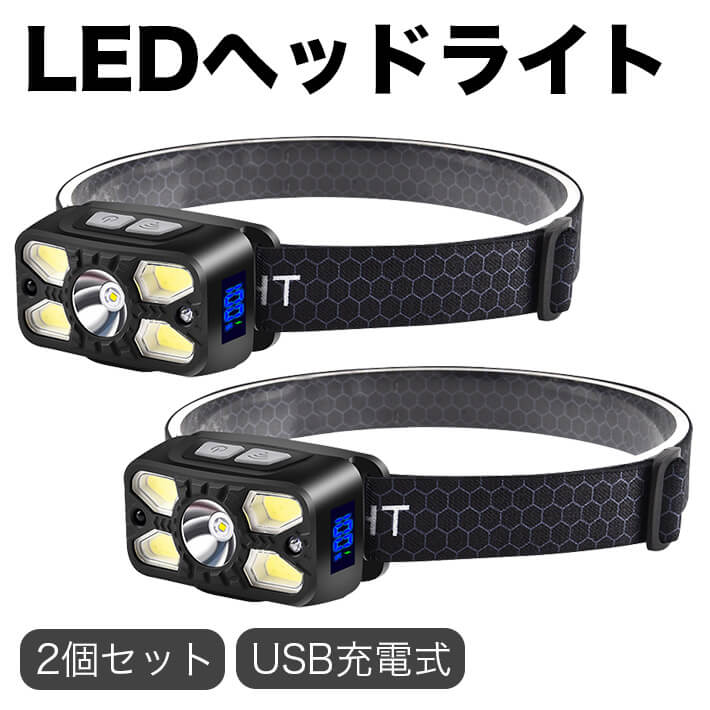 2個セット CREE-XPGLED COBライト ヘッドライト 充電式 センサー機能 電源残量表示 7モード IPX45防水 超軽量 角度調整可 実用点灯5-10時間 200-800ルーメン 防災/夜釣/登山/作業/キャンプ/散歩/アウトドア