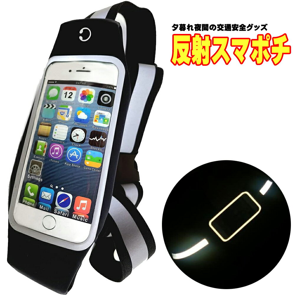 反射材付き スマホポーチ スマポチ ランニング マラソン ウォーキング 散歩 サイクリング アウトドア マラソン 夜間の交通安全に スマホケース 携帯ケース ジッパー付 操作可能 アウトドア BBQ 野外 公園 登山 山登り 釣り メンズ レディース 子供 キッズ 送料無料
