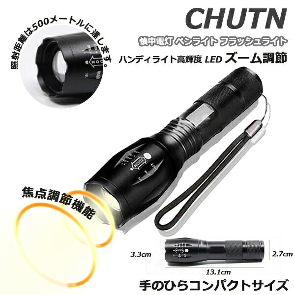 懐中電灯 ペンライト フラッシュライト ハンディライト 高輝度 LED チップ搭載 ズーム調節 SOS フラッシュ機能 軽量 小型 ペン型 電池式 作業灯 懐中電灯 T6 停電対策 緊急用 非常時 キャンプ アウトドア 登山 夜釣り 強力ライト 子供用 懐中電灯 夜散歩