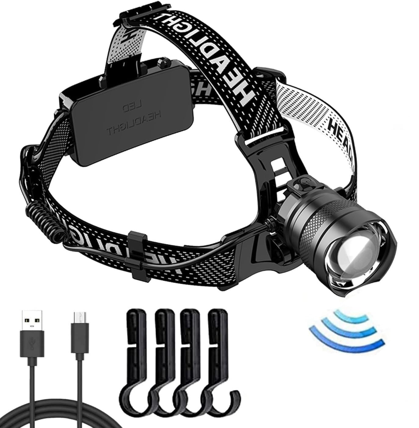 LED ヘッドライト XHP200 800000ルーメン 高輝度 大容量 Type-C 充電式 ヘッドランプ 3点灯モード 手振りセンサー機能付き ズーム機能 90°角度調節可能 実用点灯30時間 軽量 IPX65防水 登山 キャンプ 散歩 釣り