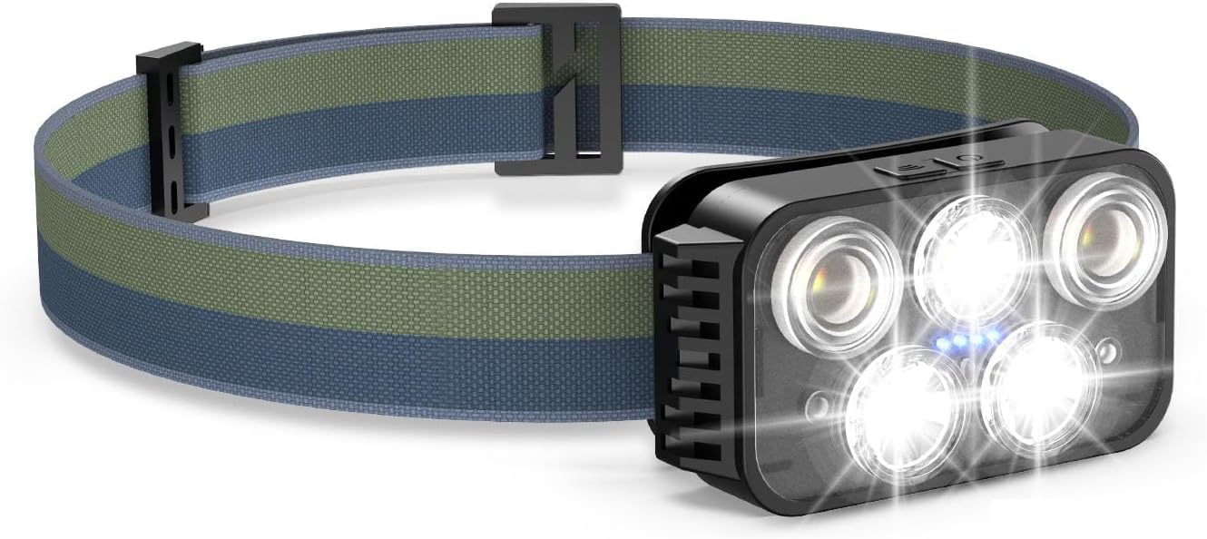 ✅長押し機能とモーションセンサー:以前のヘッドランプとは異なり、長押し機能が追加されました。 どのモードでも、モードボタンを3秒間長押しすると、ライトを直接消すことができ、 すべてのモードを切り替える必要がなくなります。また、モーションセンサーモードが追加されました。 手を振るだけで簡単にライトをオン・オフできます。これにより、 手が汚れているときにヘッドランプを汚すことを防ぐため、より便利になりました。✅超高輝度&再充電可能:ヘッドランプは業界をリードするLEDチップを採用しており、 最大輝度は800ルーメンに達し、テント全体や道路を簡単に照らし出します。 900mAhの強力な充電式バッテリーを搭載しており、充電とライトの使用を同時に行うことができます。 充電が完了するのを待つ必要はありませんし、バッテリーを交換する必要もありません。 バッテリー残量表示機能があり、バッテリーの使用状況を把握するのに役立ちます。 (フル充電で4〜10時間持続)✅超軽量で調節可能:重さわずか86gの超軽量で、 快適かつ軽便です。ヘッドランプを75°回転させて締め付けることができ、 ランニング中の揺れや滑りを防止します。快適な伸縮性のあるヘッドバンドを使用しており、 長さを簡単に調節でき、大人や子供の頭のサイズに完璧にフィットします。✅防水性能と12種類のモード:ヘッドランプはIPX5の防水性能を備えています。 高品質なケーシングは、より密閉されており、漏れを防ぐよう設計されています。 雨や雪の日でも屋内や屋外に適しています。LEDヘッドランプは12種類のライトモードを備えており、様々なニーズに対応します。