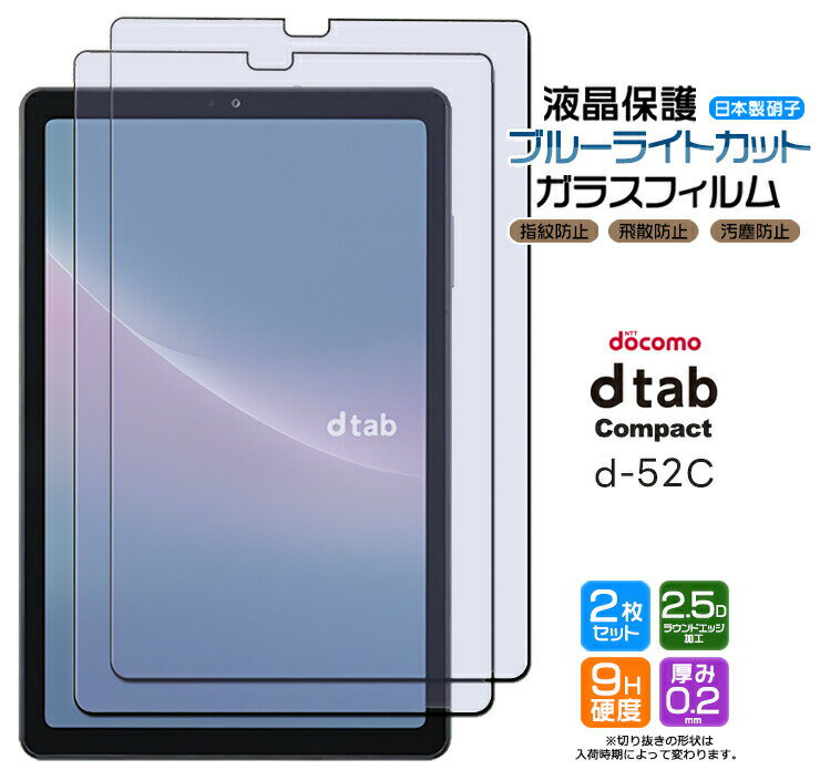 【24日20時〜50%OFFクーポン対象】 docomo dtab Compact d-52C ブルーライトカット ガラスフィルム 2枚セット フィルム 強化ガラスフィルム d52c 8.4インチ 強化ガラス 液晶保護 飛散防止 指紋防止 保護フィルム 硬度9H AGC日本製ガラス 2.5Dラウンドエッジ加工 ドコ