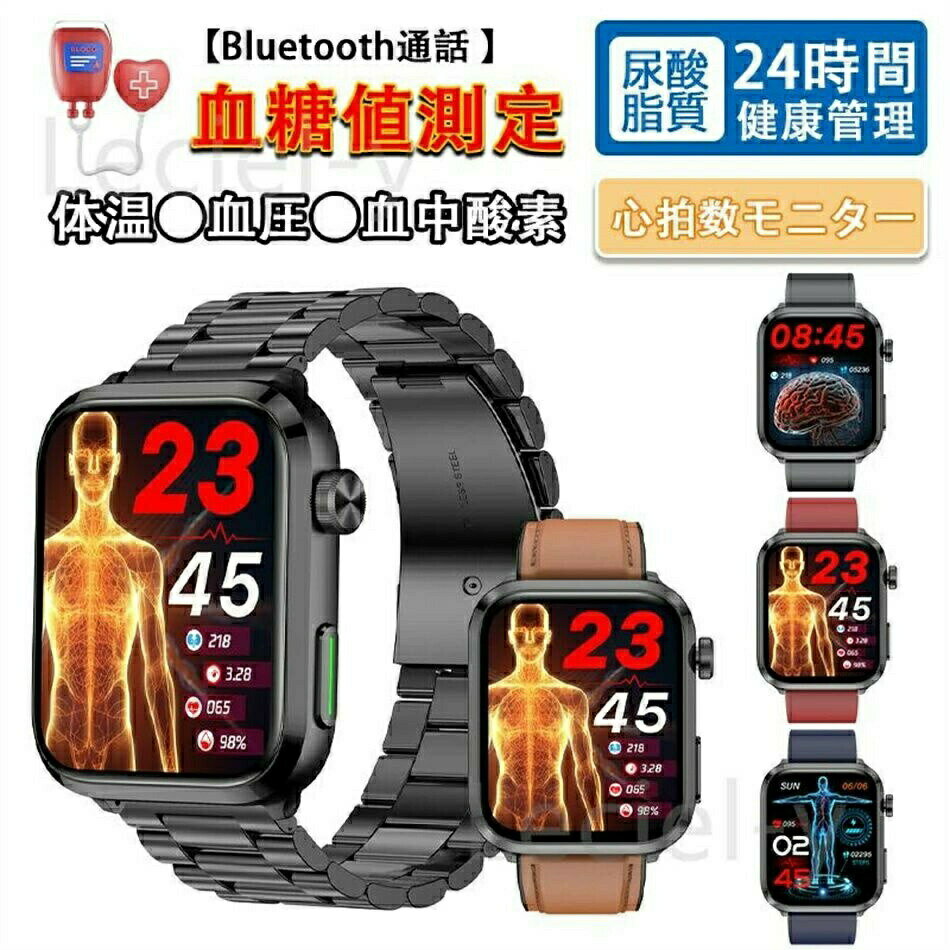 「レーザー理学療法 血糖値測定」スマートウォッチ 日本製センサー 血中脂質 尿酸 体温 SOS 心拍数 血圧 血中酸素 睡眠 着信通知 活動量計 プレゼント 腕時計