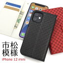 送料無料 iPhone12mini 市松模様デザイン手帳型ケース ケース カバー 2020年発売モデル シンプル スマホカバー スマホケース 手帳型 二つ折り 横開き かわいい おしゃれ 大人 市松模様 チェック柄 格子模様 和柄 カジュアル 普段使い デイリー メール便