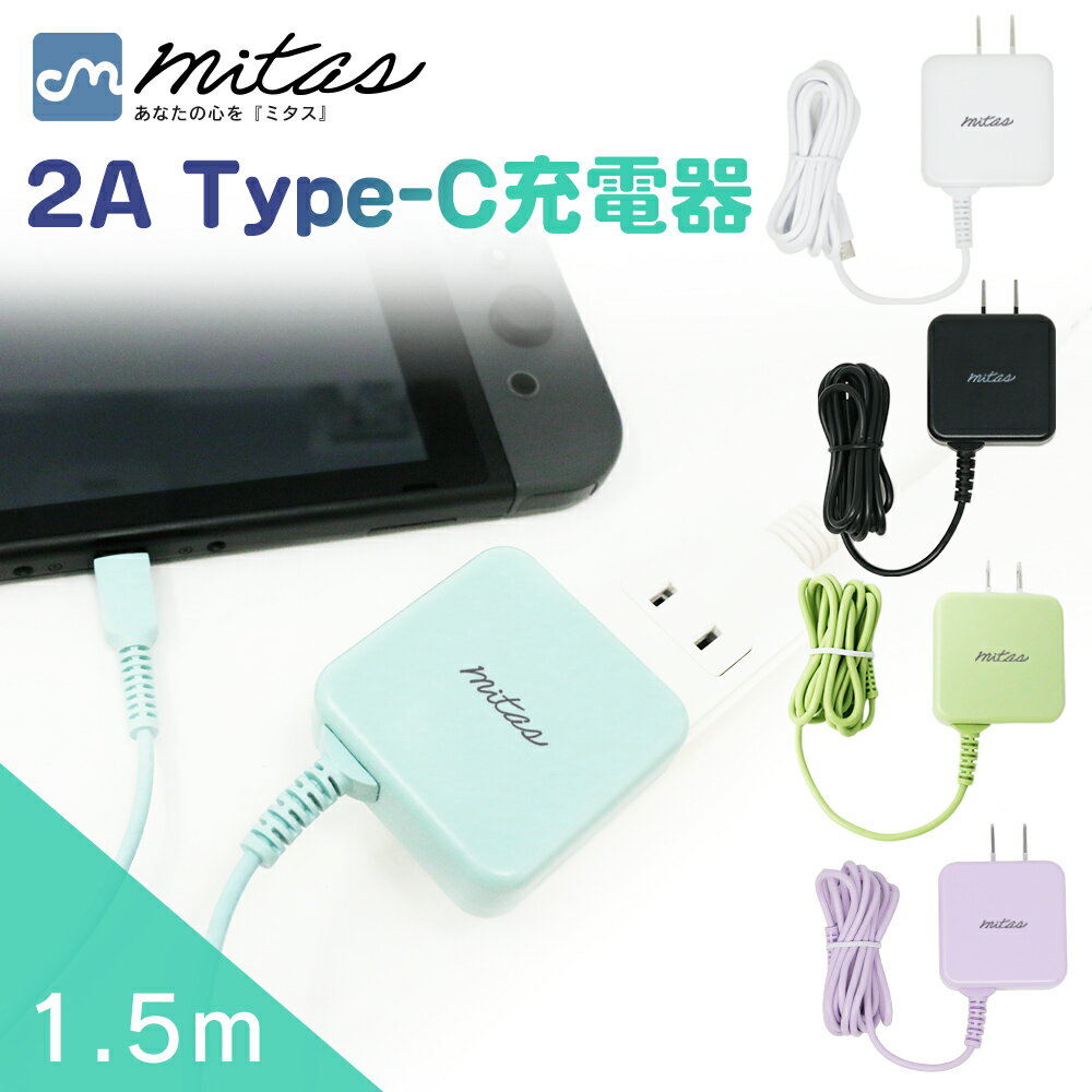【mitas公式】くすみカラー ACアダプター Type-C 最大2A 充電器 1.5m ACアダプタ 急速充電 ケーブル一体型 一体型 アンドロイド android スマホ タイプC ケーブル 海外OK AC コンセント Type-C充電器ケーブル一体型 PSE取得 マカロン パステルカラー