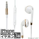 iPhone iPad用 イヤホン 3個セット イヤフォン ジャック 有線 3.5mm マイク付き 通話可能 音量調節可能 インナーイヤー シンプル リモコン かわいい スマホ スマートフォン アイフォン ホワイト iPhone7以下対応