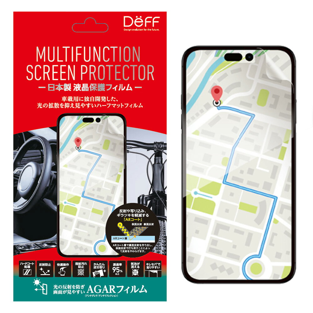 Deff iPhone 15 Pro MULUTIFUNCTION SCREEN PROTECTOR ハーフマット # DF-IP23MPMF ディーフ (スマホ用液晶保護フィルム) 車内用 自動車用 アンチリフレクション