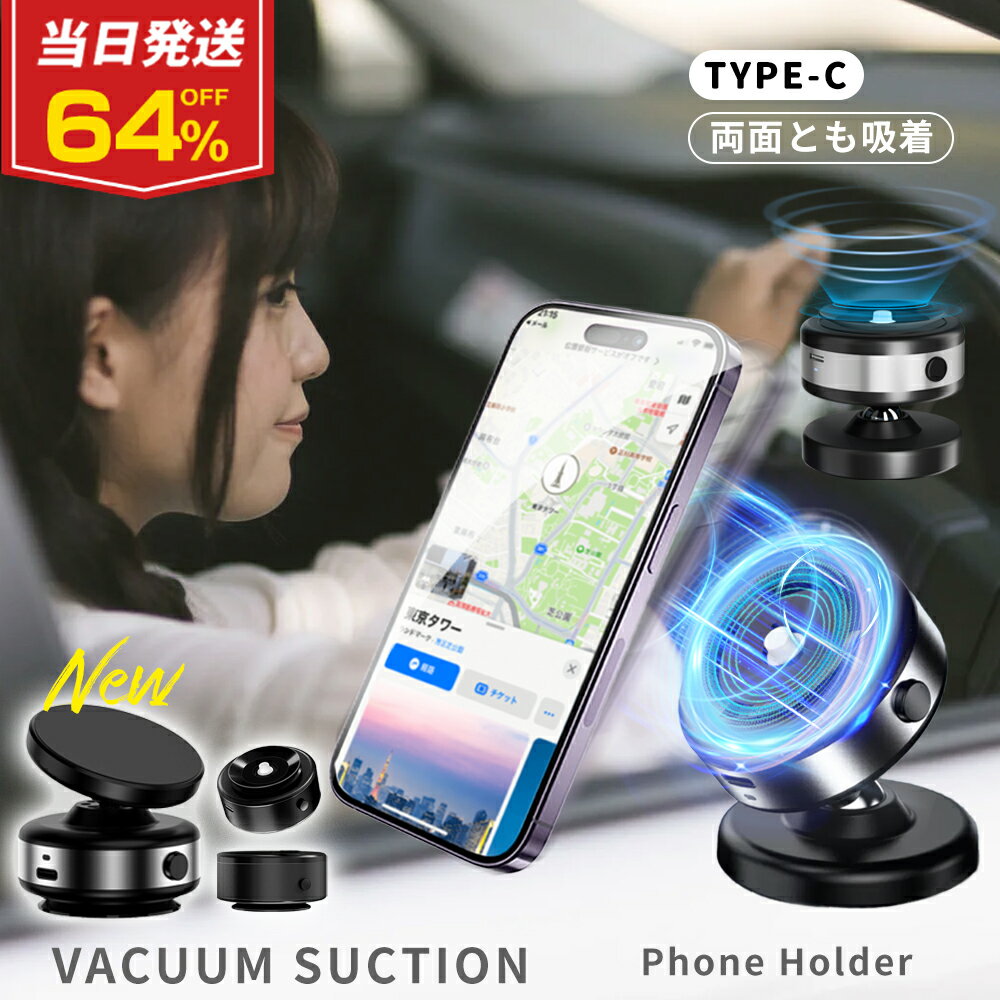 ★P10倍+クーポンで最安3666→2980円 スマホスタンド 車 マグネット 吸盤 真空吸着式 一体型 小型 超軽量 急速充電 車載磁気スタンド 安定性抜群 自動車用磁石ホルダー iPhone16/15/14/13 安全運転サポート 取り外し簡単 両面設計 360度回転 持ち運び 車用マグネットスタンド