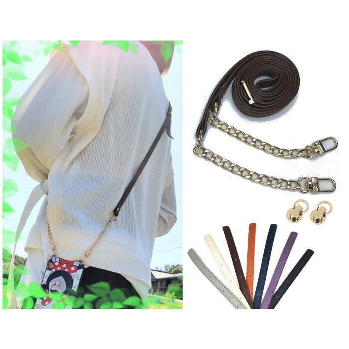 ・スマホ用のショルダーストラップです。 カラフルな合皮製で耐久性と耐摩耗性に優れており、先端はライトゴールド色のチェーンになっています。 ・たすき掛けでお使いいただけるよう十分な長さになっています。肩にかけた状態でスマホをポケットに入れることも可能です。 ・お手持ちのケースに取り付けられる薄型金具が付属しており、しっかりと取り付けることができます。ハンドメイド感覚のかんたんなDIYで金具をケースに取り付けるだけで、お気に入りのケースをそのままお使いいただくことができます。(ねじを回すためのプラスドライバーと、穴あけのためのキリをご用意ください) ・紐側の金具はワンタッチで開閉できるため、容易に着脱することができます。 ・【仕様】サイズ:M-L共通 紐長さの調整範囲:125-140cm 紐の幅:12mm 重さ:約70g 色:ブラウンこの商品のバリエーション