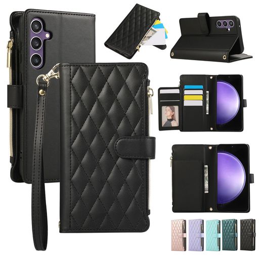 サムスンギャラクシーS23FEケース手帳型SCG24ストラップ付きレザースマホケースぎゃらくしマグネット開閉スタンド機能キャッシュポケットRFIDブロッキンブラック