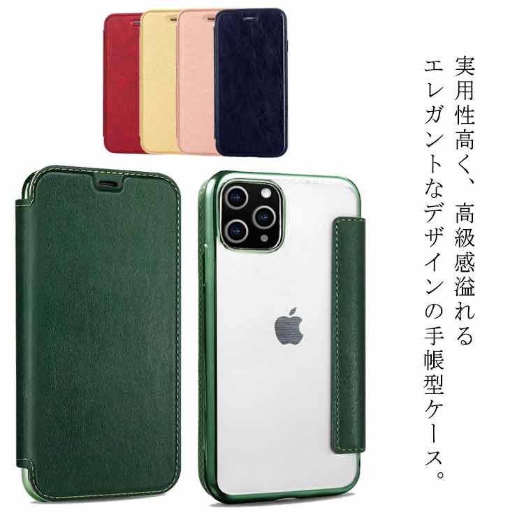 iPhone12ProMax 手帳型ケース カバー シンプル レザー 合皮 マグネット開閉 カード収納 スタンド 閉じたまま通話可能 ストラップホール付き