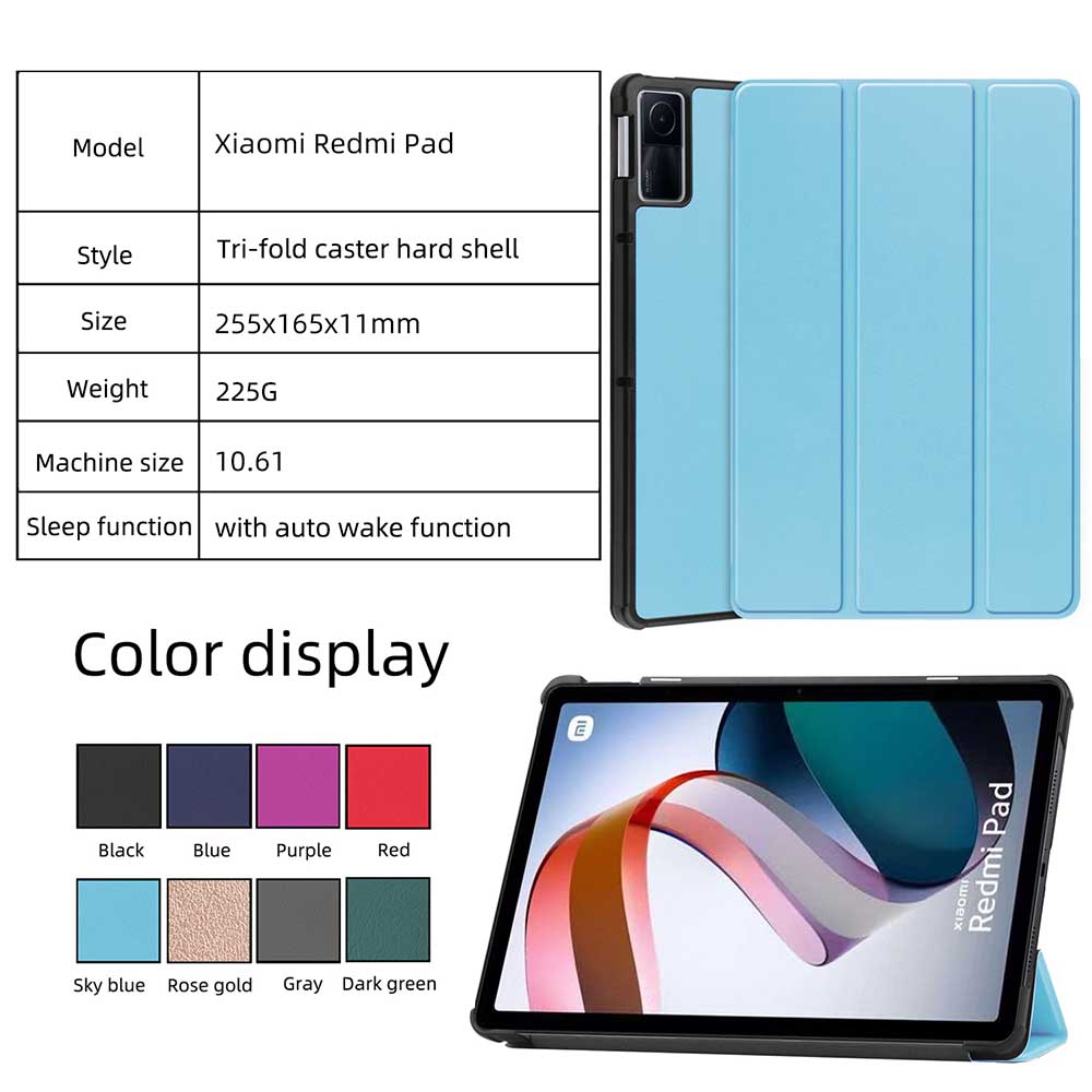 シャオミ Xiaomi Redmi Pad 10.61inch ケース カバー 傷つけ防止 スタンドカバー薄型 軽量 三つ折 内蔵マグネット開閉式 PUレザーカバー 全面保護シャオミ レッドミ パッド 送料無料