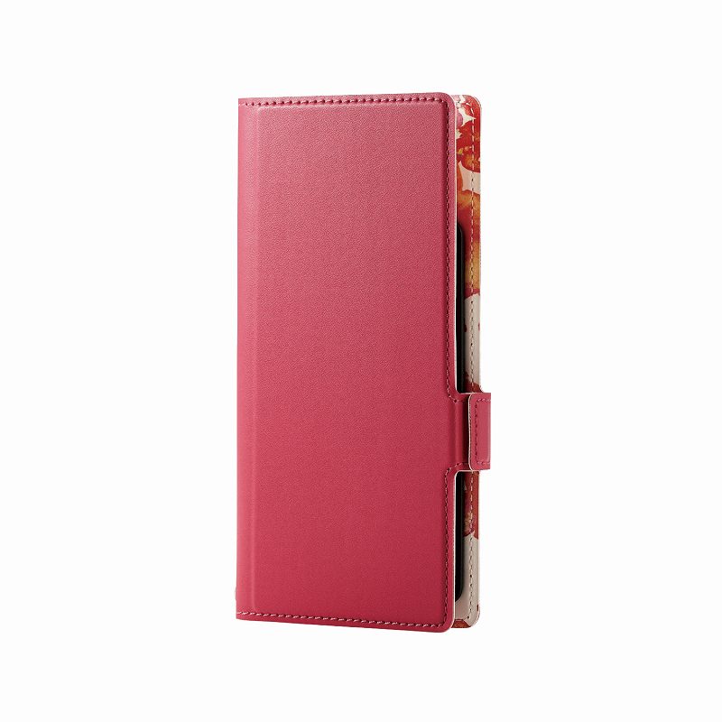 エレコム elecom スマホケース 汎用 マルチケース Sサイズ レザー 手帳型 マグネット開閉 スライド式 スタンド機能 薄型 軽量 花柄 ストラップホール付 ディープピンク