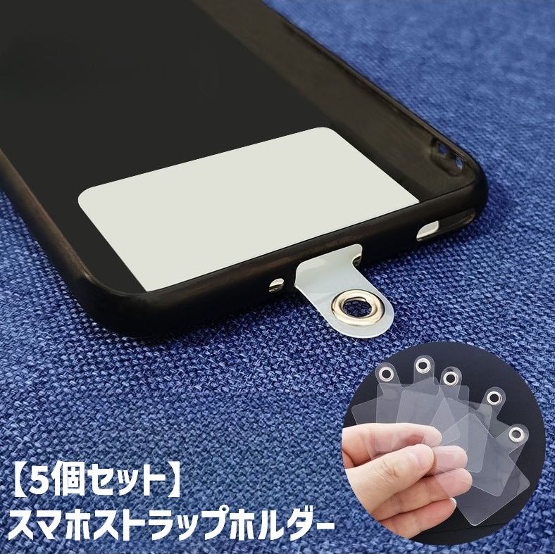 送料無料 スマホストラップホルダー 5個セット 携帯ストラップホルダー プレート ストラップホール 肩掛け 斜め掛け 首掛け 透明 クリア シンプル 後付け スマートフォン 携帯 紛失防止 落下防止 便利 交換