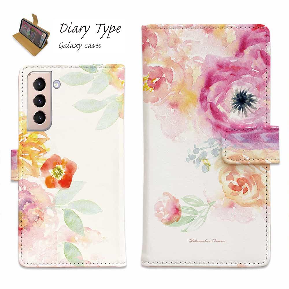 Galaxy S25 A25 Ultra S24 FE A56 スマホケース ギャラクシー ケース 手帳型 マグネット カード収納 Galaxy S24 ケース A35 A54 A23 A53 A52 A51 A41 A32 A31 A22 S23 S23+ S22 S21 S10+ S10 ギャラクシー ケース 花 花柄 ウォーターカラーフラワー