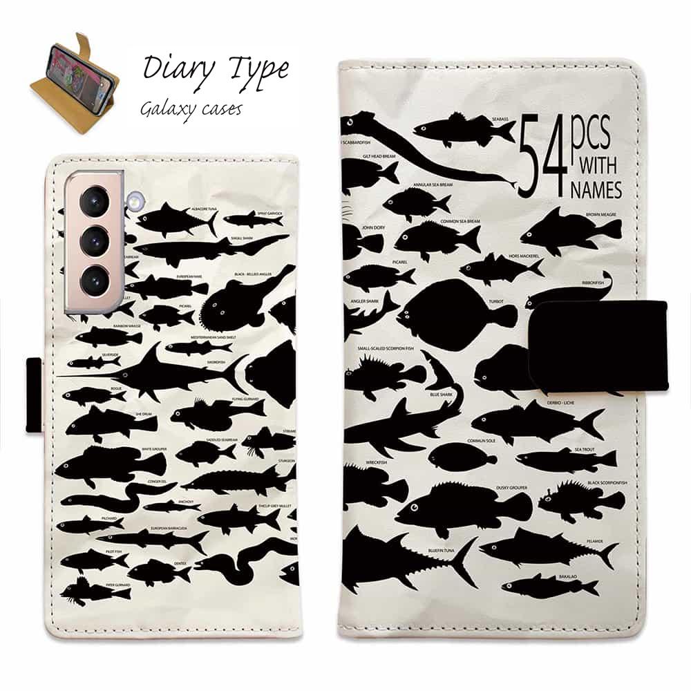 Galaxy S25 A25 Ultra S24 FE A56 スマホケース ギャラクシー ケース 手帳型 マグネット カード収納 Galaxy S24 ケース A35 A54 A23 A53 A52 A51 A41 A32 A31 A22 S23 S23+ S22 S21 S10+ S10 釣り 魚 ルアー Fish Name 54