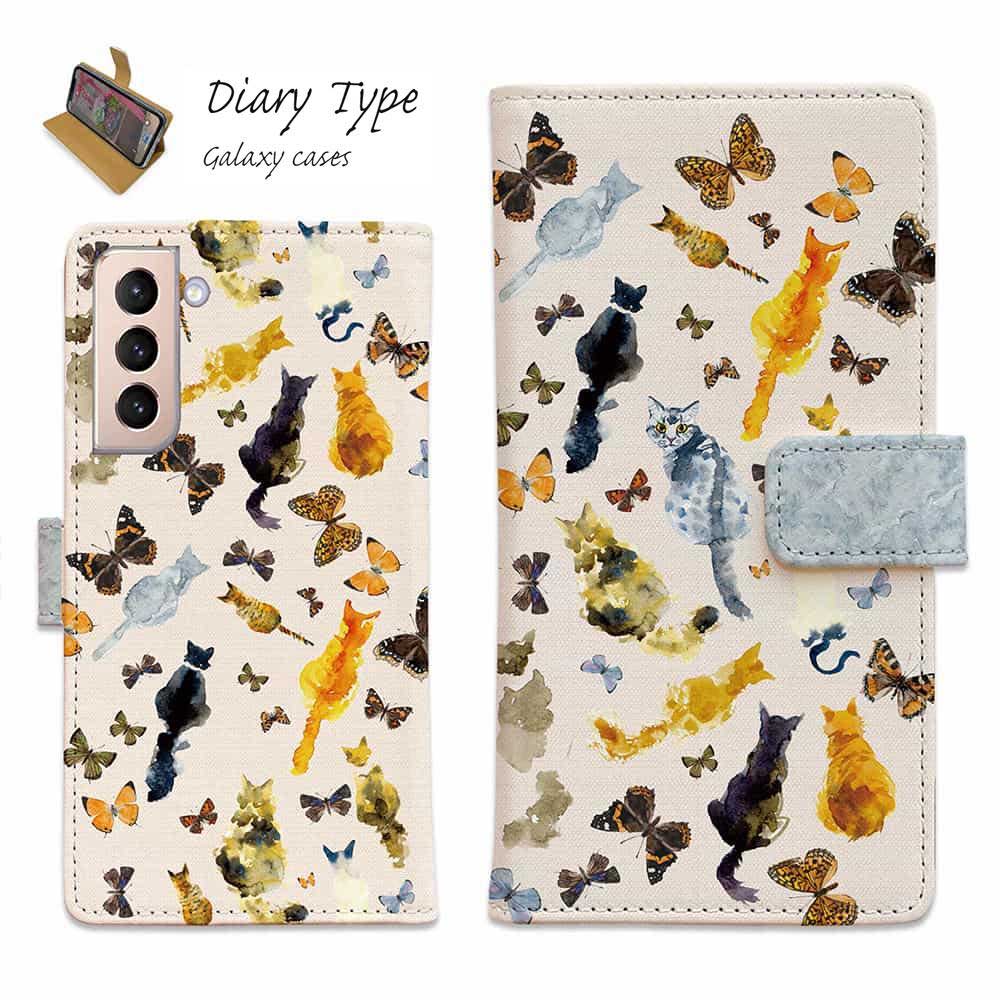 Galaxy S25 A25 Ultra S24 FE A56 スマホケース ギャラクシー ケース 手帳型 マグネット カード収納 Galaxy S24 ケース A35 A54 A23 A53 A52 A51 A41 A32 A31 A22 S23 S23+ S22 S21 S10+ S10 猫 ネコ 用品 雑貨 猫の背中