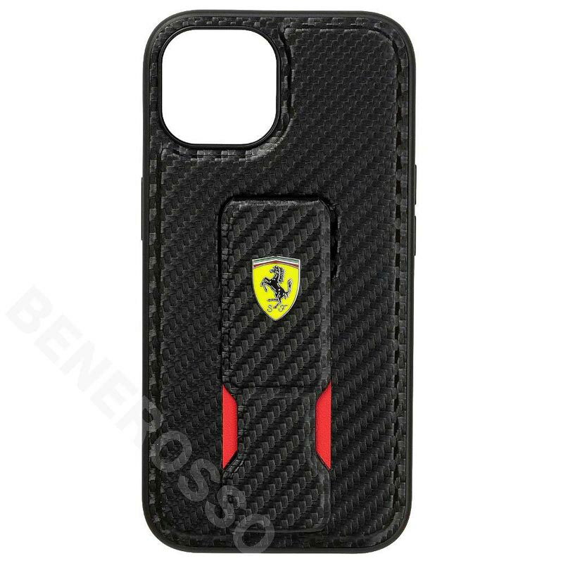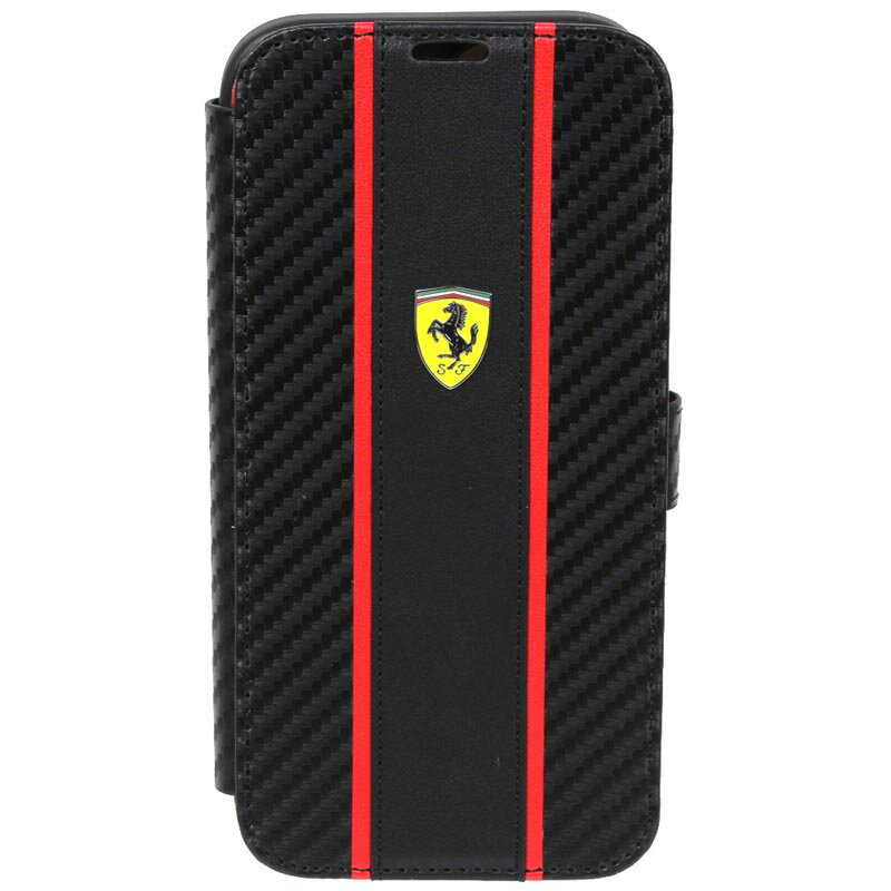 フェラーリ iPhone 15 カーボン調PUレザー 手帳型ケース ストライプ ブラック FEBKP15SNMBK