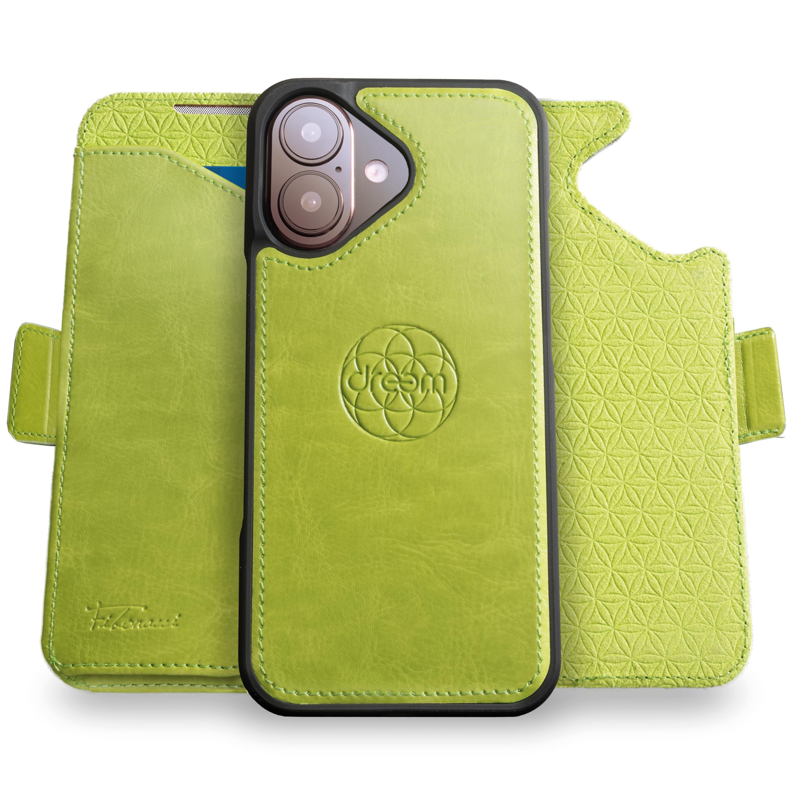 Dreem for iPhone 17 Case Wallet, Revolutionary Phone Stand, Vegan Leather, MagSafe-Fit, Magnetic Detachable Flip Cover, RFID Blocking Card Holder, Gift-Box [Fibonacci:Light Green]