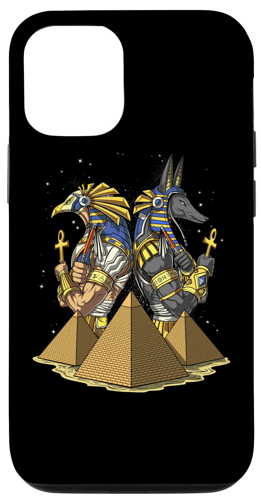 iPhone 12/12 Pro エジプトの神々アヌビスとホルスの目エジプトのピラミッドアンクのシンボル古代エジプト神話 スマホケース
