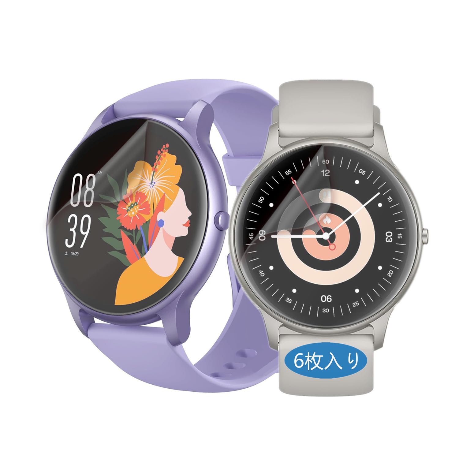 Frgnie【6枚入り】対応 Parsonver スマートウォッチ レディース SR1 保護フィルム, TPU製 気泡自動消え, 対応 AGPTEK 丸型 超薄型 Smaart Watch 1.32インチ SR2 曲面専用フィルム