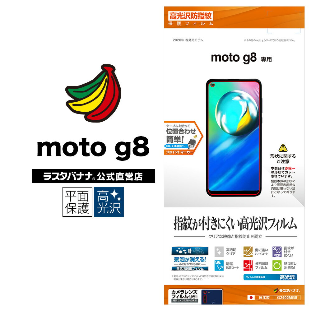 Motorola moto g8 フィルム 平面保護 高光沢防指紋 モトローラー 液晶保護 G2402MG8 ラスタバナナ