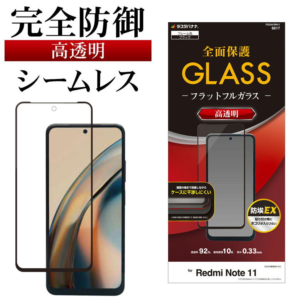Xiaomi Redmi Note11 ガラスフィルム 全面保護 シームレス クリア 干渉しない 干渉レス ホコリ防止 0.33mm 硬度10H ブラック シャオミ レッドミー ノート11 FG3341RN11 保護フィルム ラスタバナナ