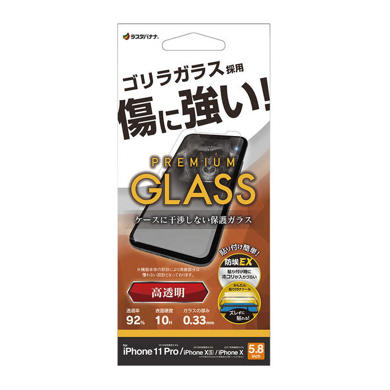ラスタバナナ iPhone11 Pro/XS/X ゴリラガラス 光沢 0.33mm クリア GST3801IP958