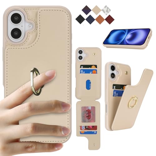 Cavor iPhone16 ケース 背面ポケット付き iPhone16 手帳型ケース カードポケット上下開アイフォン16 携帯ケースRFID機能薄型 落下防止 iPhone16 財布型ケースiPhone16 手帳スマホケース case 360°回転リング 可愛い横置 免許証と磁気機能 Qi急速充電対応-ホワイト