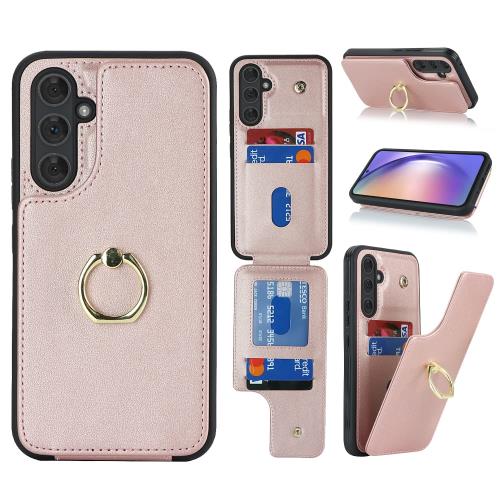 Cavor Galaxy A54 5G SC-53D SCG21 ケース 背面ポケット付き Galaxy A54 5G手帳型ケースSCG21 ケース カードポケット上下開折りたたみ SC-53D 携帯ケース RFID機能薄型 落下防止Galaxy A54 5G 財布型ケース Galaxy A54 5G case 360°回転リング横置 免許証と-ピンク