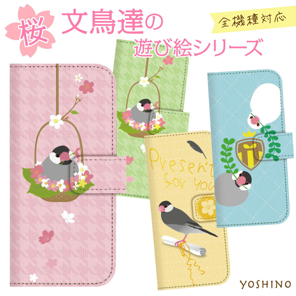 スマホケース 手帳型 全機種対応 手帳 ケース カバー iPhone 17 Pro Air ProMax 16 e 15 14 13 12 11 X XR XS 8 7 6 5 SE mini Plus AQUOS ARROWS Xperia Galaxy OPPO HUAWEI Google Pixel 桜文鳥 yoshino 38-zen-ds02