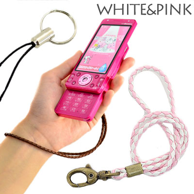 レザーハンドストラップ ホワイト×ピンク BLH-05【携帯ストラップ/ストラップ/簡単装着/携帯アクセサリー/スマートフォン/モバイル/レザー/カメラ/DS/落下防止】【アウトレット】